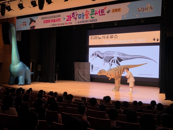 [충청뉴스큐] 논산시는 지난 9일 논산아트센터에서 드림스타트 대상 아동 및 학부모, 일반아동 등 700여명이 함께한 가운데, 2025년 드림스타트 ‘오리지널 과학 마술 콘서트 공룡편’ 공연을 개최했다.
