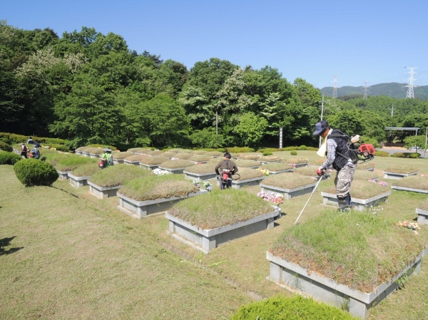 군은 지난 15일부터 전면적 21,068㎡에 이르는 묘지 530여 기를 대상으로 예초작업과 전지작업을 진행하고 묘역 보수, 봉안당 정비 등 세부적인 환경정비도 병행하고 있다.