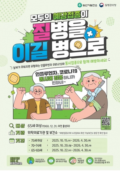 [충청뉴스큐] 논산시는 다가오는 겨울철 계절성 호흡기 질환 유행에 대비해 내년 4월 30일까지 무료 예방접종을 순차적으로 실시한다고 밝혔다.