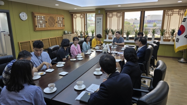 [충청뉴스큐] 논산시는 23일 관내 직업재활 시설인 ‘논산발그래일터’ 하주현 이사장과 종사자, 소중한사람들 근로자 7명을 초청해 소통의 자리를 마련했다.
