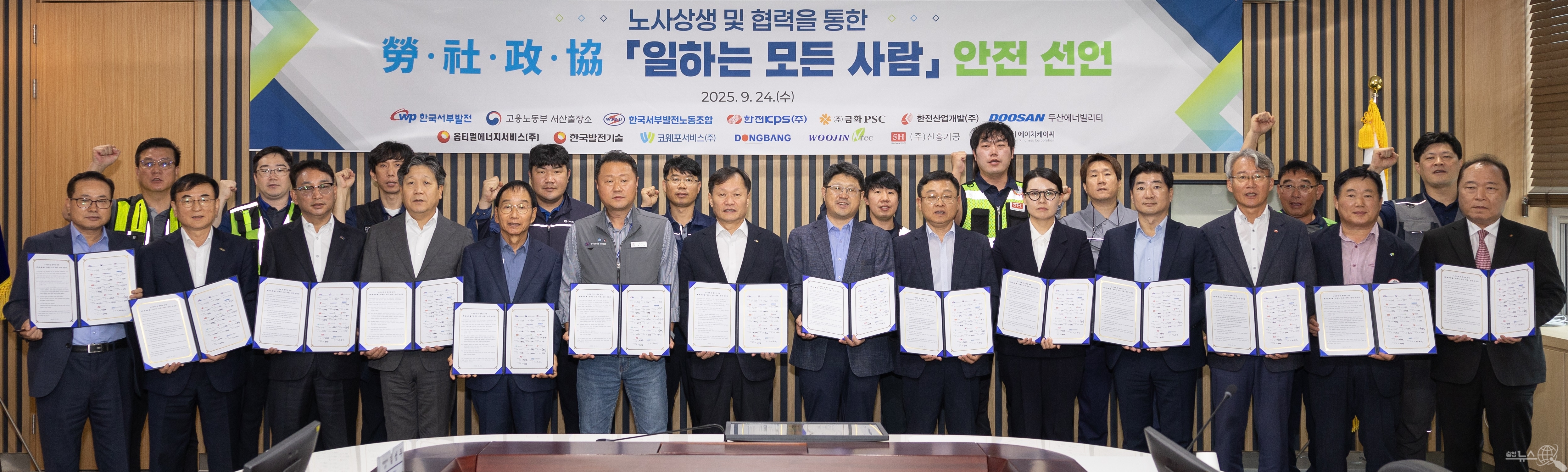 서부발전은 24일 충남 태안발전본부에서 고용노동부 서산출장소, 한국서부발전노동조합, 11개 협력업체 노사 대표와 ‘노・사・정・협 모든 일하는 사람 안전선언문’을 채택했다고 25일 밝혔다.