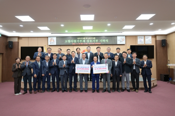 [충청뉴스큐] 논산시는 29일 공주시청 대백제실에서 공주시 및 양 시 농협 관계자들과 함께 ‘고향사랑기부금 상호 기탁식’을 개최했다고 밝혔다.