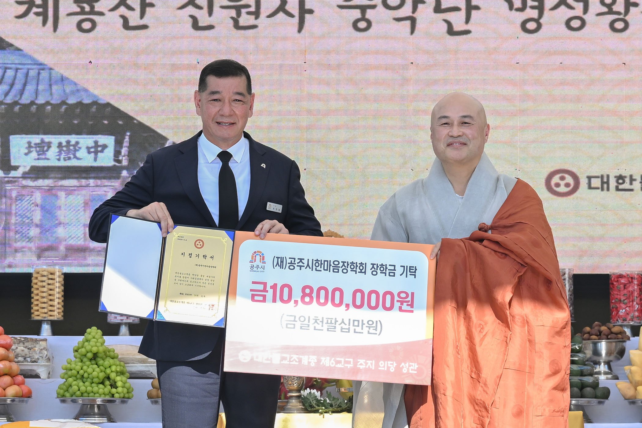 [충청뉴스큐] 대한불교조계종 제6교구 신원사(주지 의당 성관)는 지난 11일 공주지역 청소년들의 교육 지원을 위해 장학금 1,080만원을 (재)공주시한마음장학회(이사장 최원철)에 기탁했다.