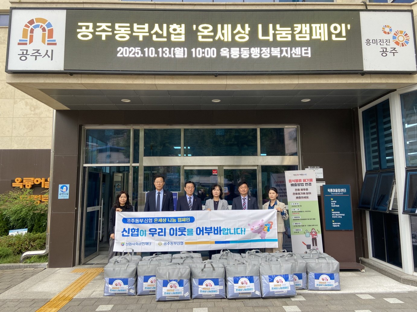 신동화 공주동부신협 이사장은 “온세상 나눔캠페인은 지역과 이웃의 곁을 지키는 신협의 가치를 잘 보여주는 대표적인 사회공헌 활동”이라며 “앞으로도 소외된 이웃을 위한 나눔 활동을 꾸준히 이어가겠다”고 말했다.