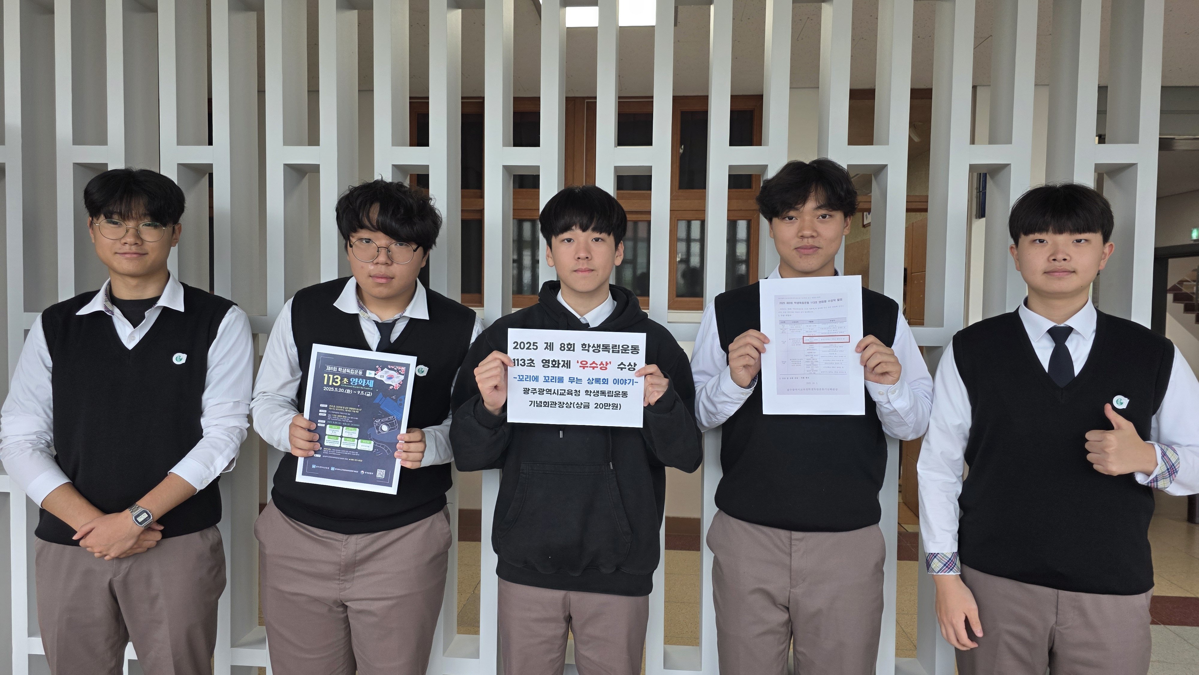 [충청뉴스큐] 춘천고등학교(교장 이상철)는 2025 제8회 학생독립운동 113초 영화제에서 ‘꼬리에 꼬리를 무는 상록회 이야기’ 작품으로 우수상을 수상했다.