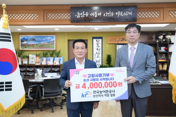 [충청뉴스큐] 논산시는 20일 한국농어촌공사 논산지사 직원 일동이 고향사랑기부금 400만원을 기탁했다고 밝혔다.