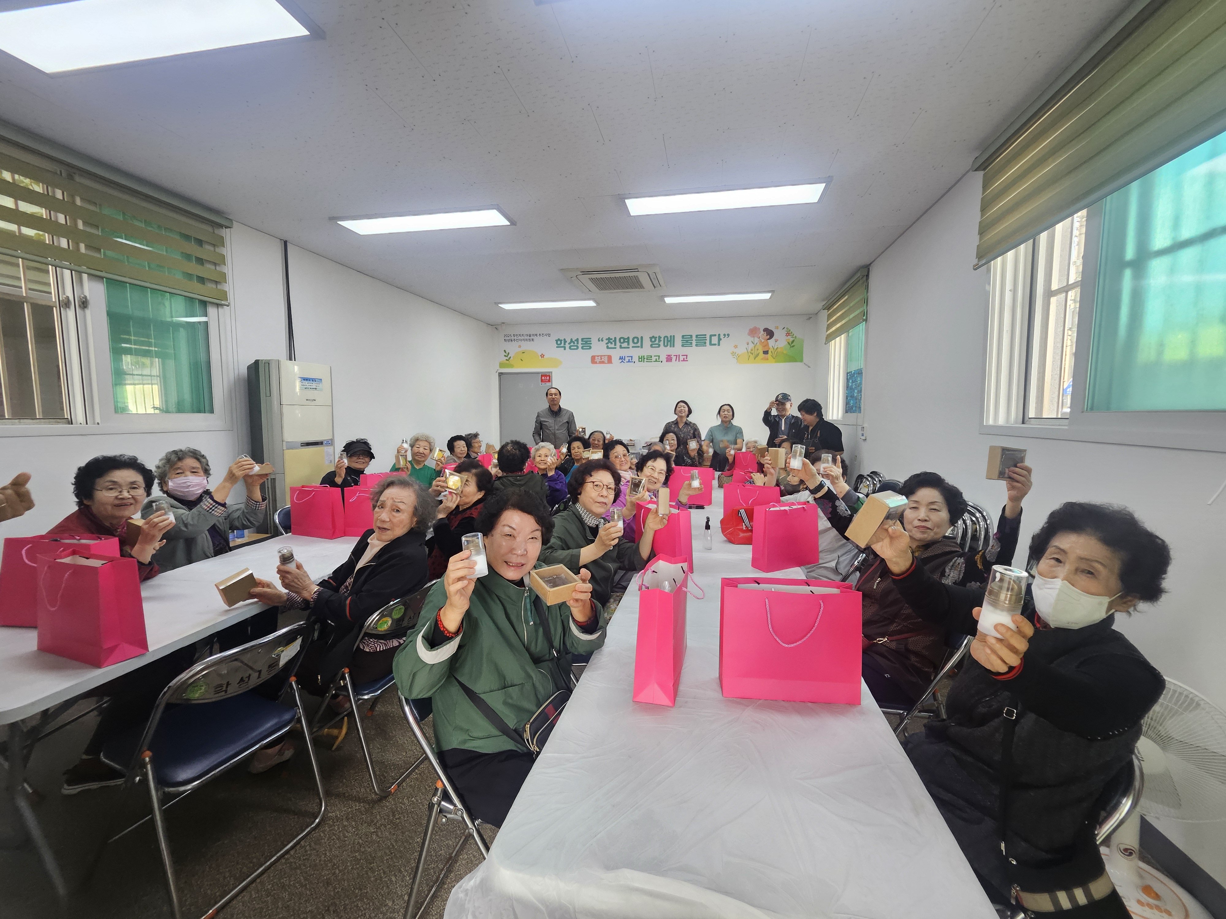이날 어르신들이 직접 만든 물품(비누, 크림, 간식 꾸러미)은 관내 취약계층에 전달될 예정이다.
