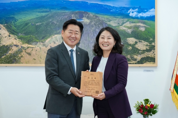 오영훈 지사는 27일 도청 집무실에서 길청순 이사장에게 제주도 홍보대사 위촉장을 수여했다.