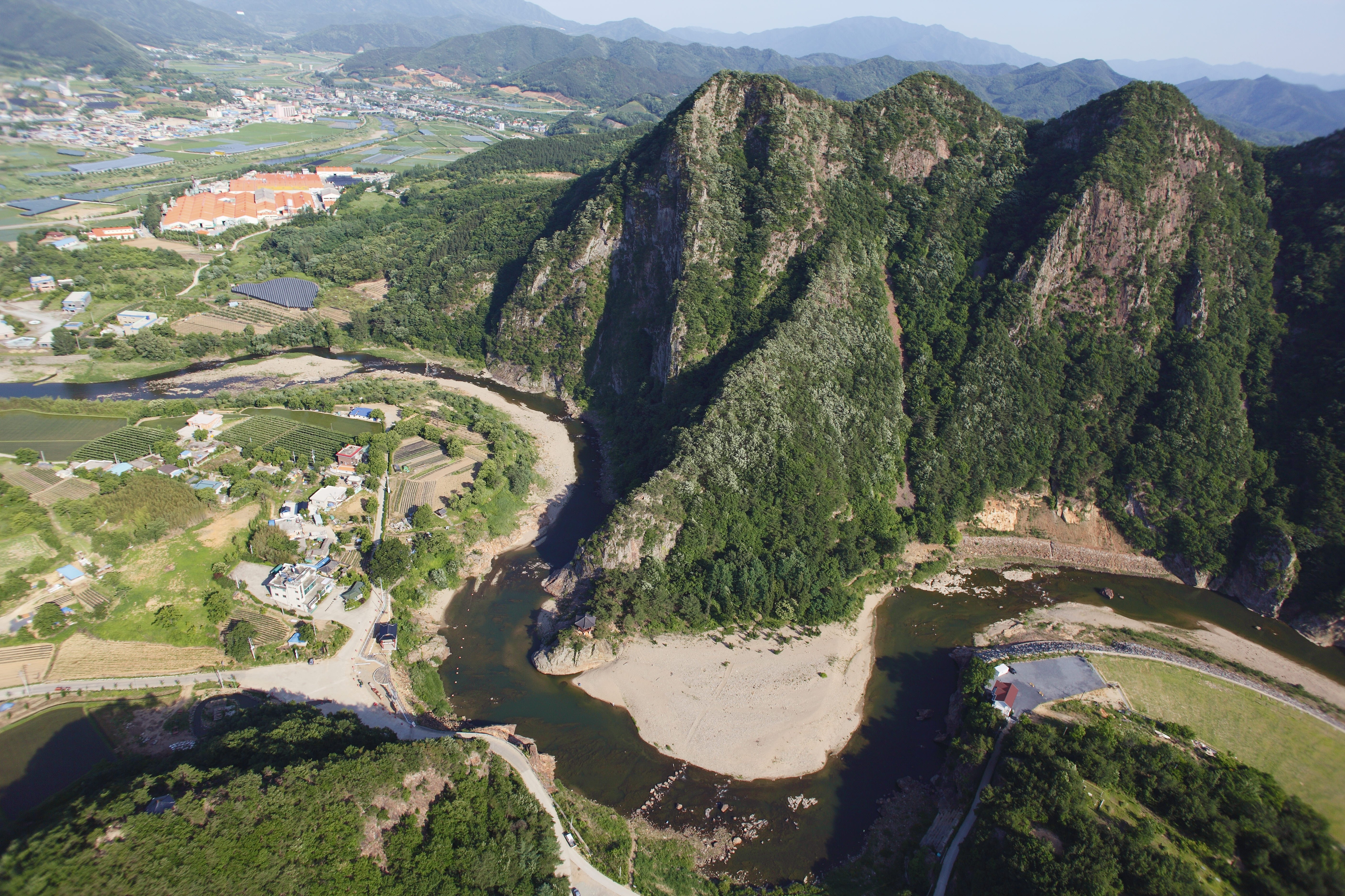 황간면 원촌리에 위치한 월류봉은 초강천이 병풍처럼 휘감아 흐르는 절경으로 ‘달이 머무는 봉우리’라는 이름처럼 고즈넉한 아름다움을 간직한 영동의 대표 명소다.