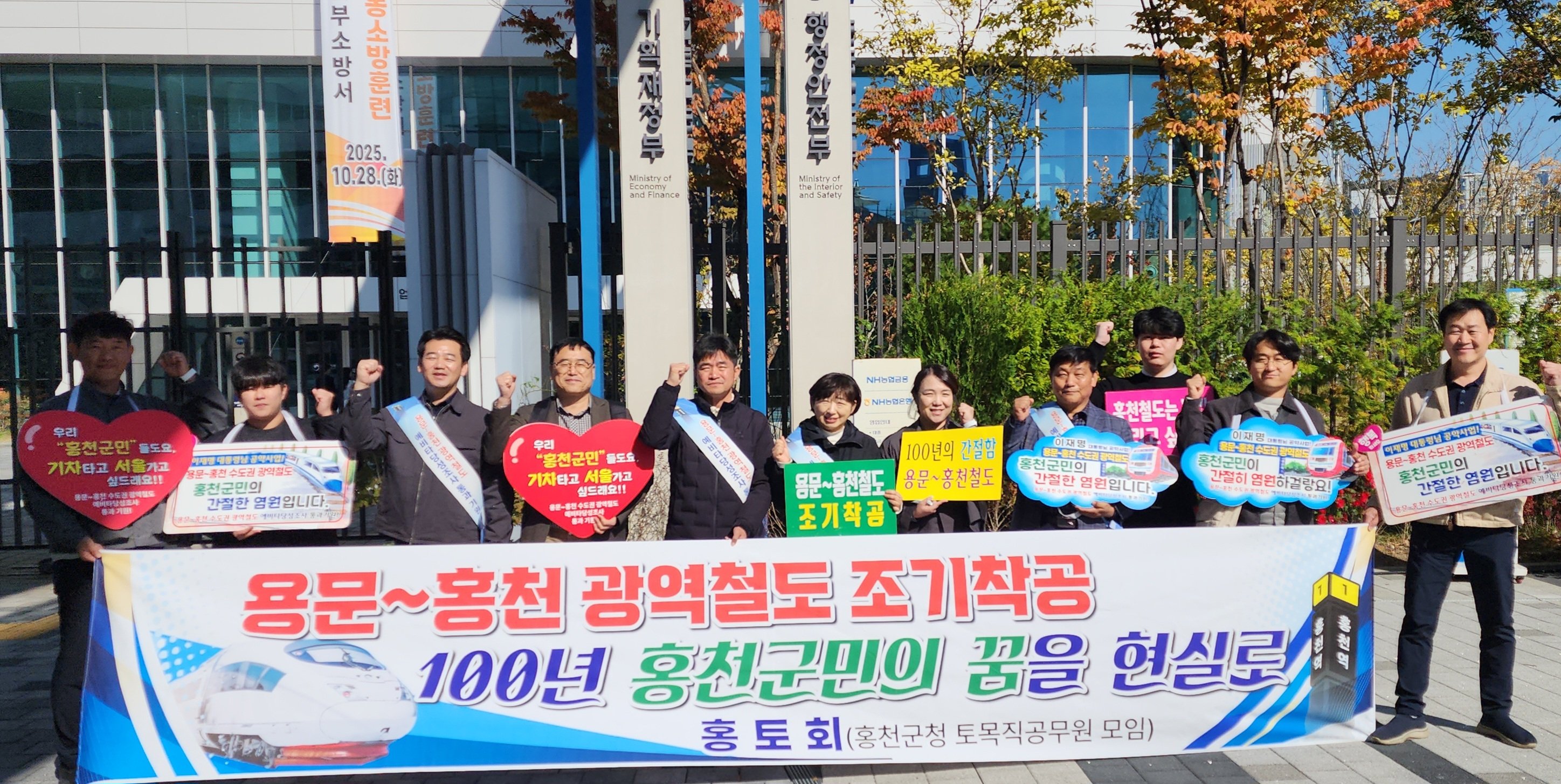 [충청뉴스큐] 홍천군 토목직 공무원 모임(회장 이득선)은 10월 28일(화), 홍천군민의 100년 염원인 용문~홍천 광역철도의 예비타당성조사 통과와 조기 착공을 염원하는 세종시 릴레이 홍보활동을 추진했다고 밝혔다.