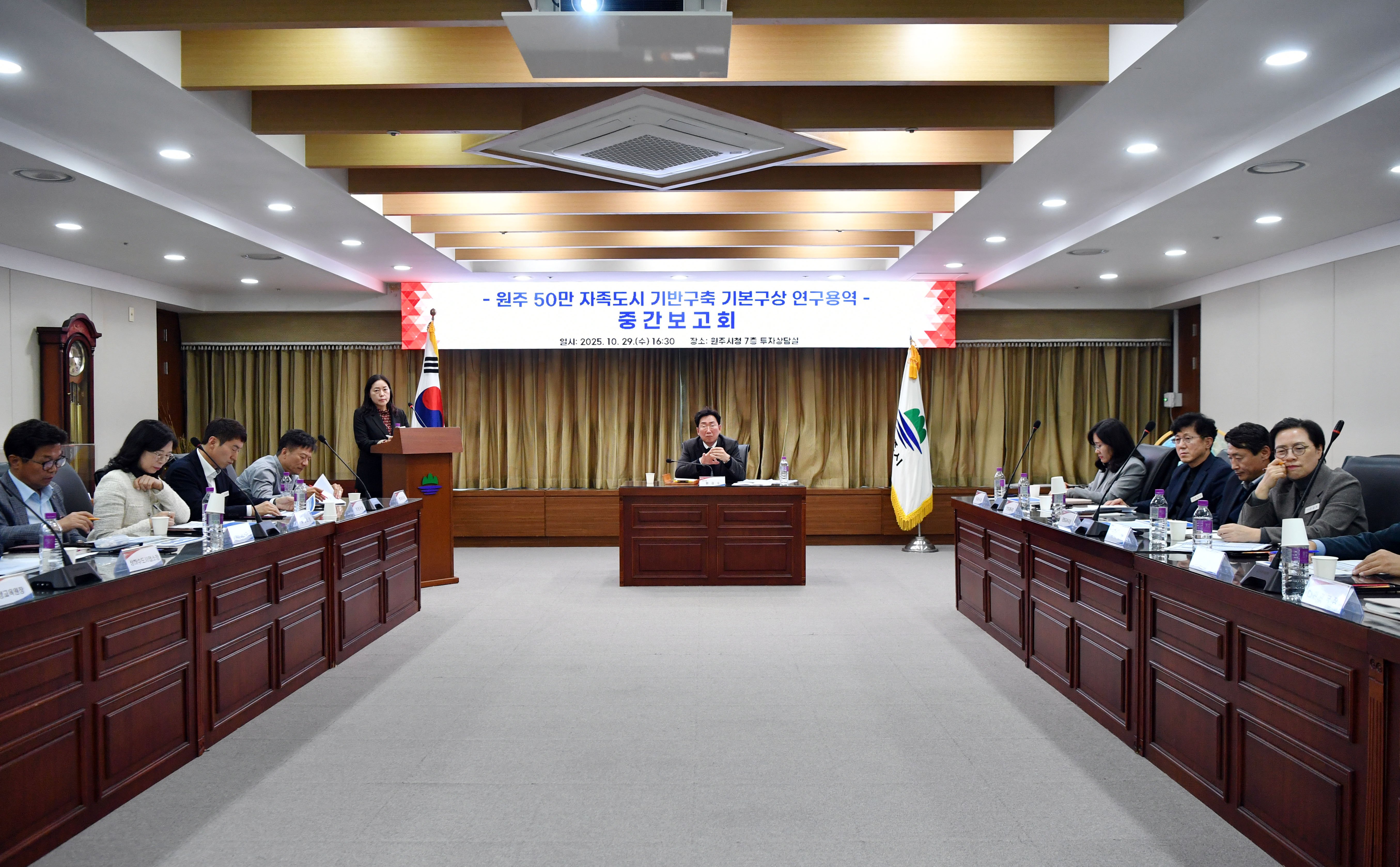 [충청뉴스큐] 원주시는 29일 시청 7층 투자상담실에서 ‘원주 50만 자족도시 기반구축 기본구상 연구용역’중간보고회를 개최했다.