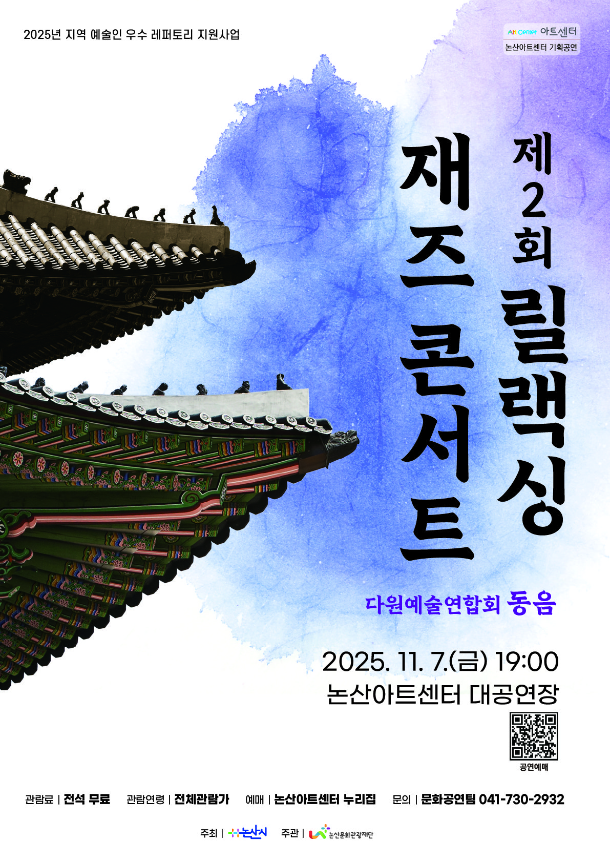 [충청뉴스큐] (재)논산문화관광재단(이사장 백성현)은 오는 11월 7일(금) 19시에 논산아트센터 대공연장에서 다원예술연합회 동음 ‘제2회 릴랙싱 재즈 콘서트’공연을 진행한다고 밝혔다.