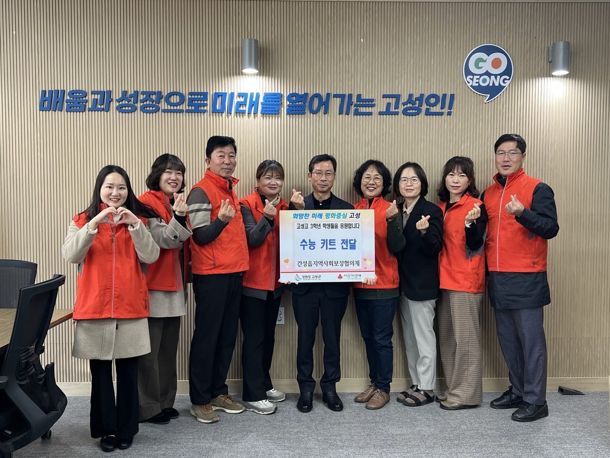 [충청뉴스큐] 간성읍 지역사회보장협의체는 다가오는 대학수학능력시험을 앞두고 고성고등학교 3학년 수험생 65명을 응원하기 위해 지난 11월 11일 고성고등학교를 방문해 ‘수능 응원 키트’를 전달했다.