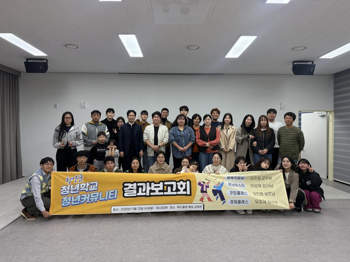 [충청뉴스큐] 청양군은 지난 12일 청양푸드플랜 홍보교육관에서 ‘2025 청년학교 및 청년커뮤니티 결과보고회’를 개최하고 올 한해 청년들이 주도적으로 참여한 다양한 활동의 성과를 공유했다.