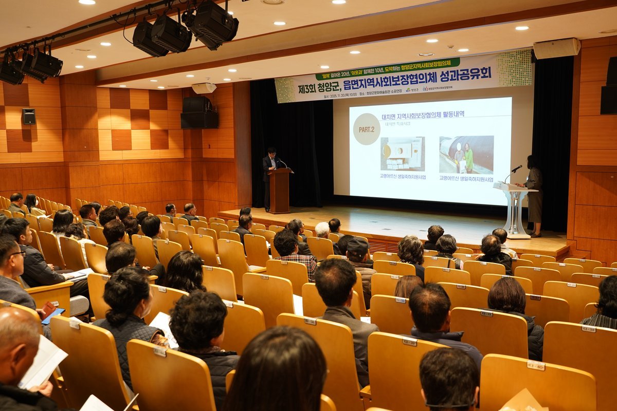 [충청뉴스큐] 청양군지역사회보장협의체는 지난 20일 청양군 문화예술회관에서 ‘제3회 2025년 청양군 읍면 지역사회보장협의체 성과공유회’를 성황리에 개최했다고 밝혔다.