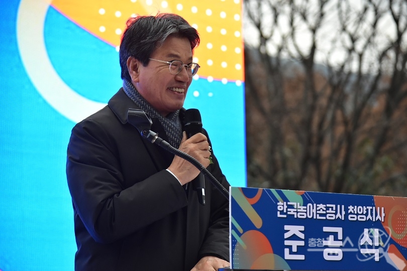 축사에 나선 김돈곤 청양군수는 "오늘 청사 준공식에 참석하며 이게 단순히 새롭게 청사를 지어서 이사하는 것이 아니라 정말 청양 농업과 청양 지역의 발전에 새로운 견인차로서의 역할을 해줬으면 좋겠다라는 생각을 했다"며 "제가 8년을 맞는데 농업용수 관리는 물론 수해로 인한 특별재난지역으로 선포됐을때도, 엄청난 피해를 입었을 때도 정말 밤낮 가리지 않고 발로 뛰던 농어촌공사 청양지사 관계자들의 그런 모습을 기억한다"고 말했다.