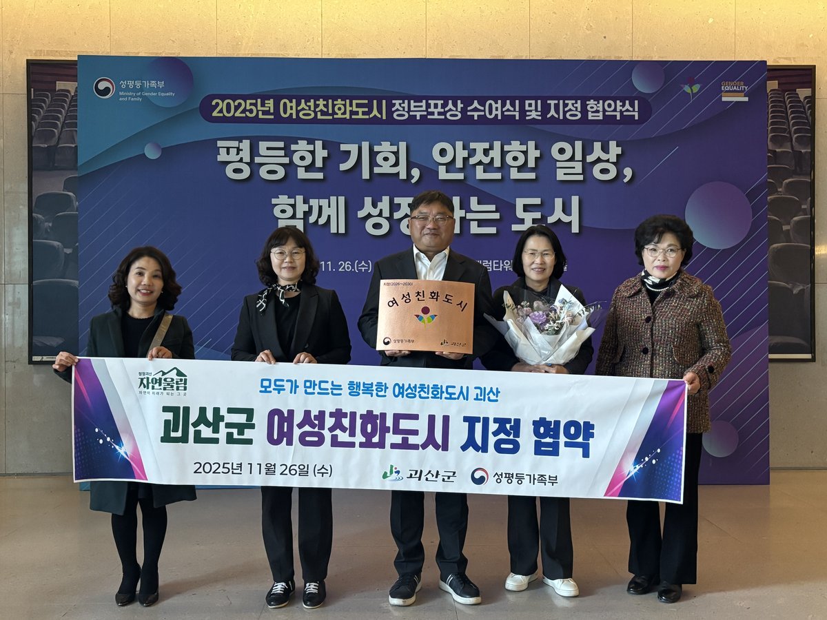 [충청뉴스큐] 충북 괴산군은 성평등가족부와 여성친화도시 지정 협약을 체결하고 오는 2026년부터 2030년까지 5년간 여성친화도시 사업을 추진한다고 27일 밝혔다.