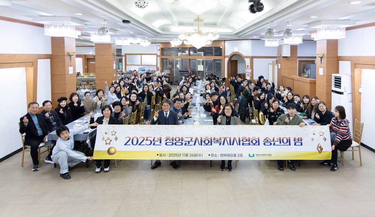 [충청뉴스큐] 청양군은 지난 26일 청양읍 행복웨딩홀에서 ‘2025 청양군 사회복지사협회 송년의밤’행사가 성황리에 열렸다고 밝혔다.