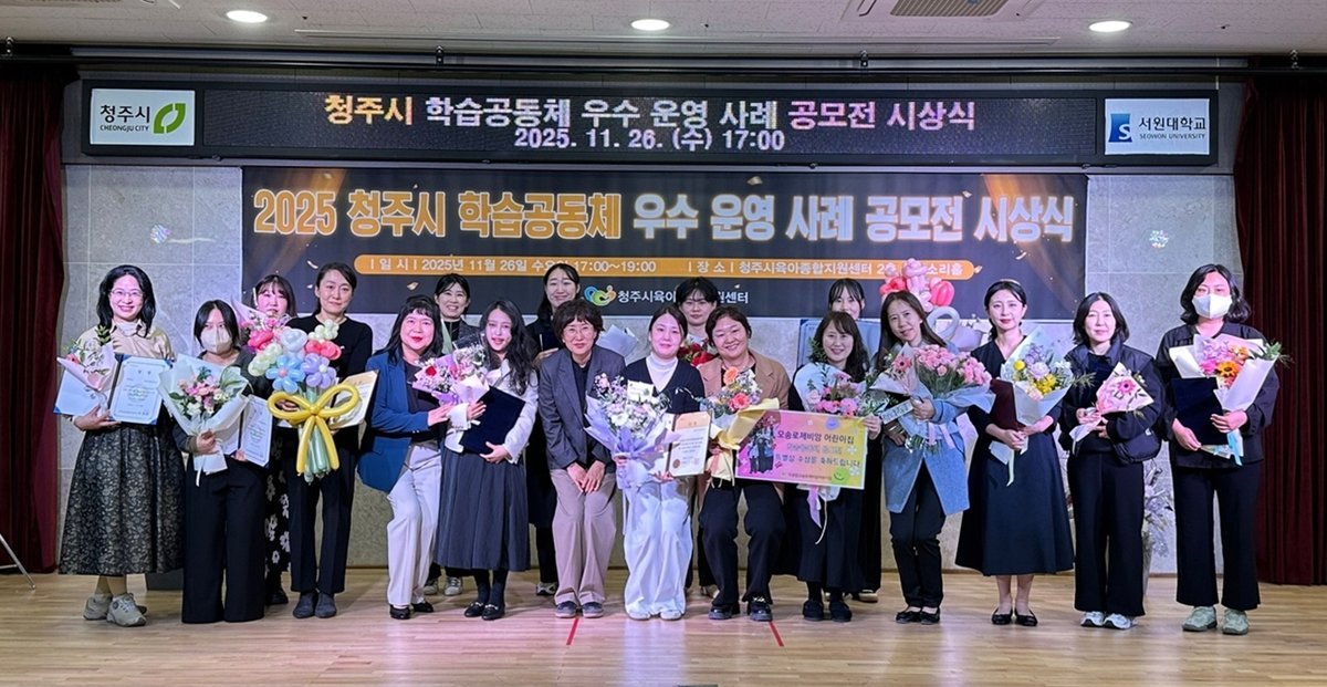 [충청뉴스큐] 청주시육아종합지원센터는 지난 26일 센터 2층 아이소리홀에서 ‘학습공동체 우수 운영 사례 공모전’시상식과 사업 평가회를 개최했다.
