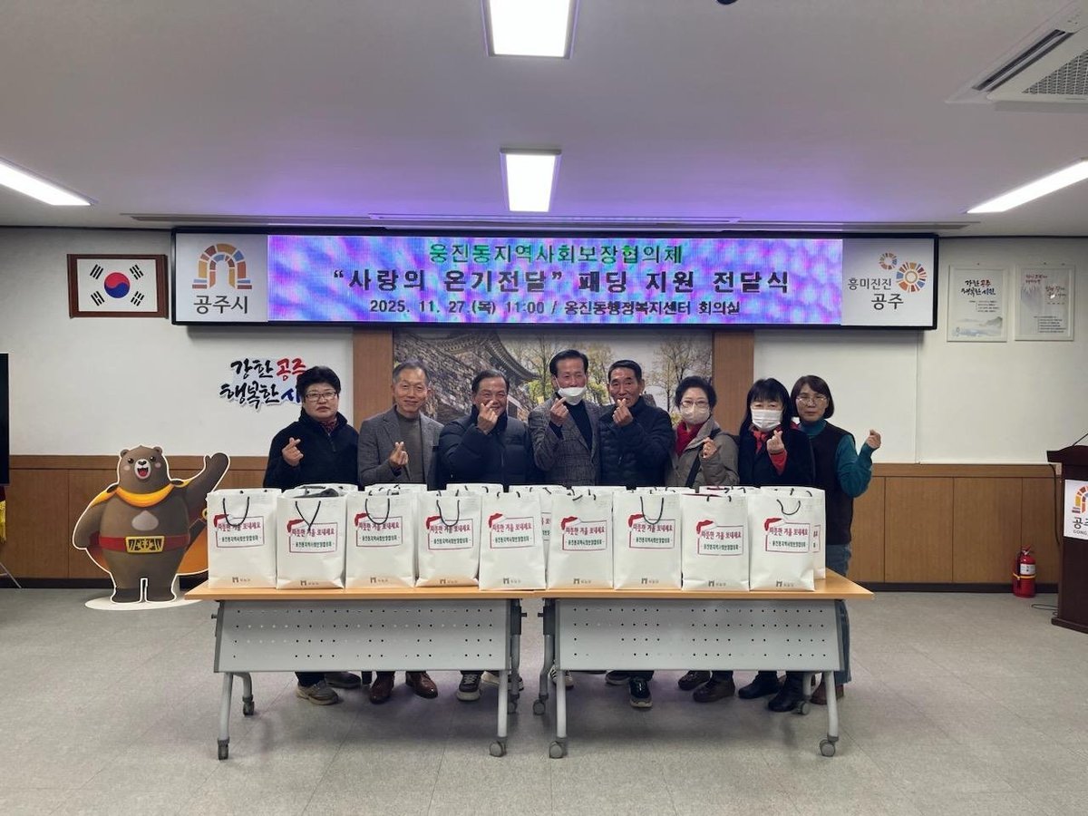 [충청뉴스큐] 공주시 웅진동은 지난 27일 웅진동 지역사회보장협의체가 관내 저소득 어르신 17명에게 겨울 패딩을 전달하는 나눔 행사를 열었다고 밝혔다.