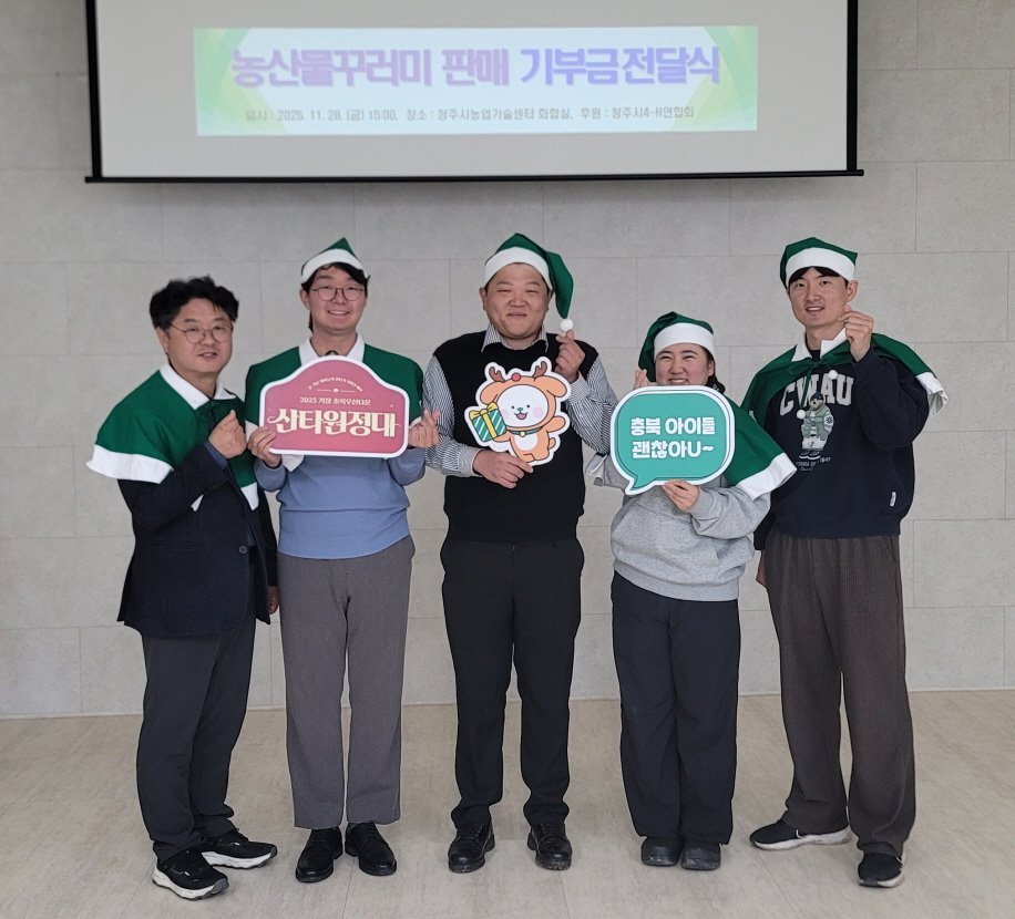 [충청뉴스큐] 청주시4-H연합회는 28일 청주시농업기술센터 화합실에서 농산물꾸러미 판매로 마련한 수익금 61만6000원을 초록우산어린이재단에 전달했다.