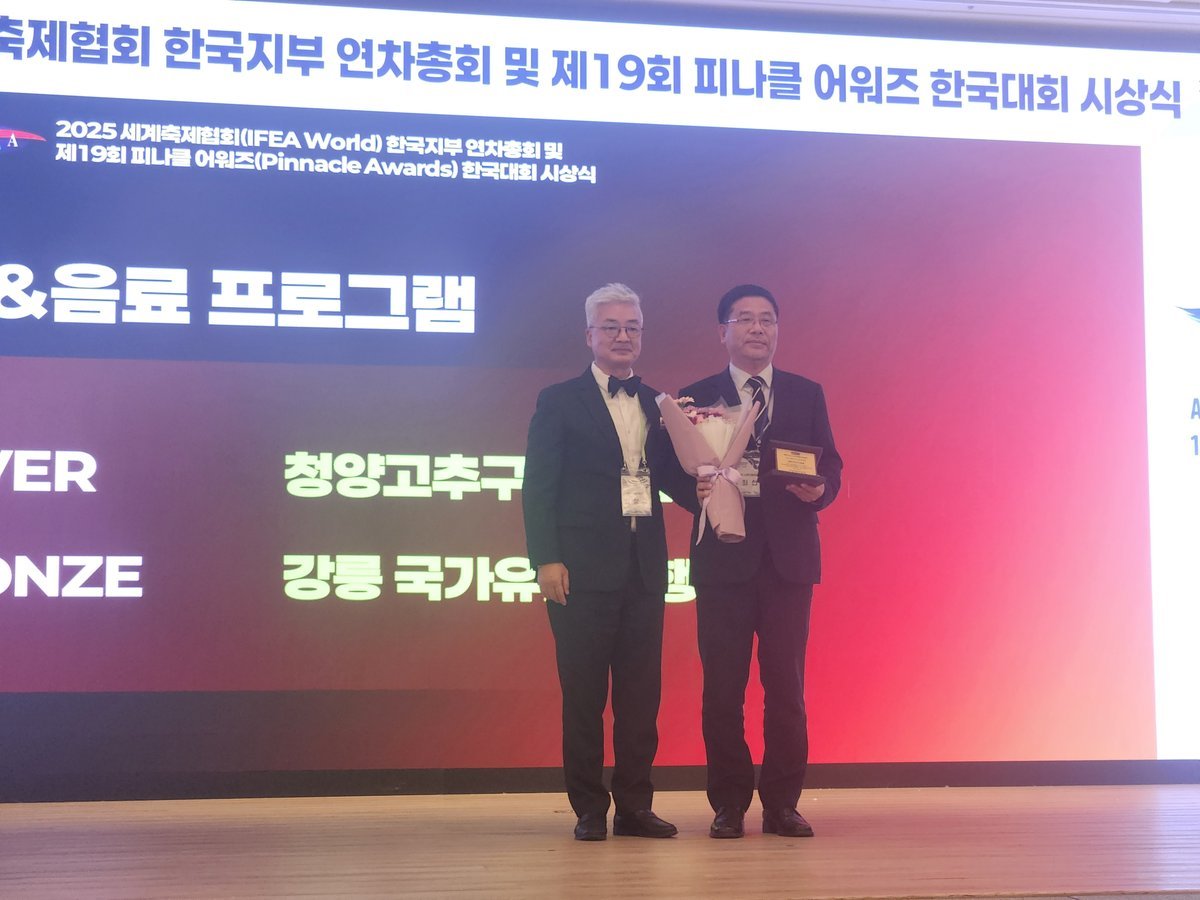 [충청뉴스큐] 청양군이 ‘2025 피나클 어워즈 한국대회’에서 청양 고추·구기자 축제로 음식&음료 프로그램 부문 은상을 수상하며, 축제 먹거리 혁신과 지역 농촌체험휴양마을과의 연계 성과를 전국적으로 인정받았다.