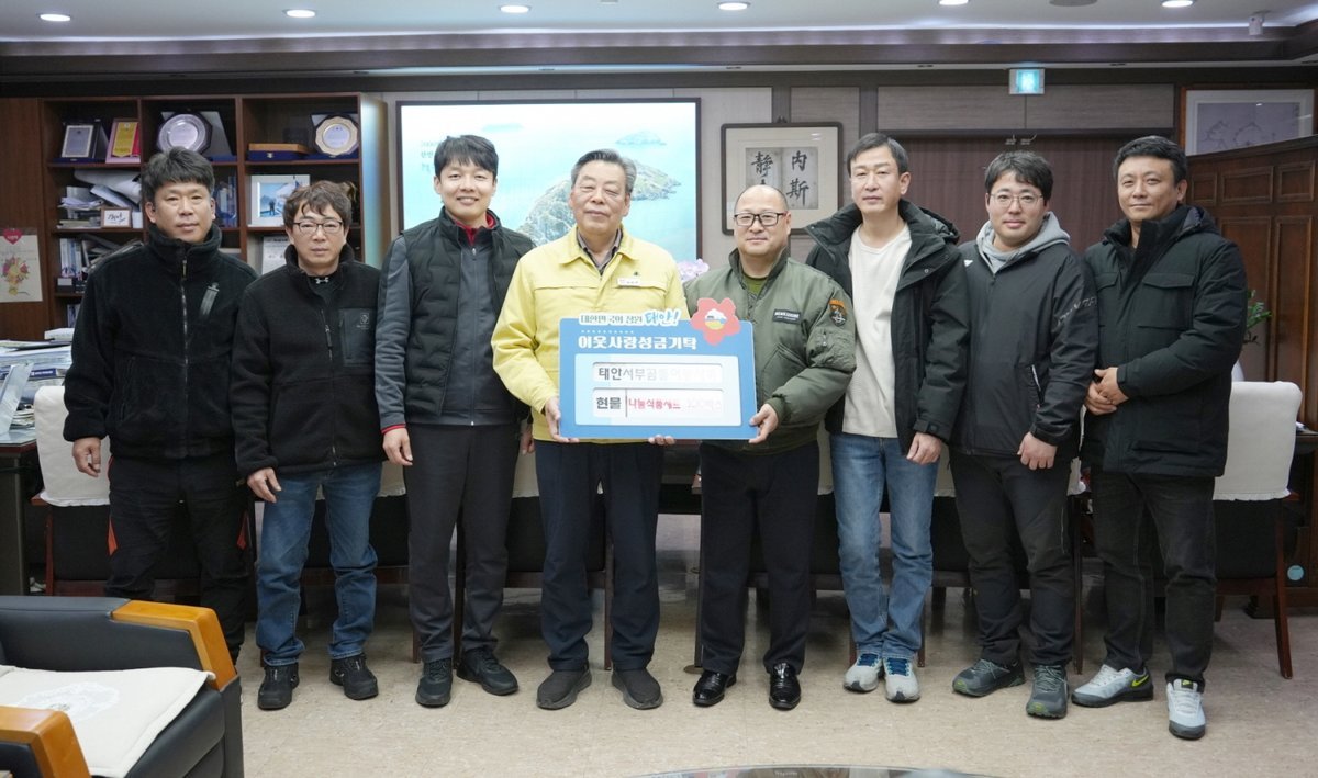 [충청뉴스큐] 태안군에 따르면, 태안서부곰돌이회 김승준 회장과 회원 경승호·김동위·김선일·최병주·함대정·정광훈 씨는 지난 8일 군청 군수실에서 기탁식을 갖고 사골곰탕과 떡국, 즉석밥, 라면 등 ‘나눔식품 세트’총 100박스를 군에 전달했다.