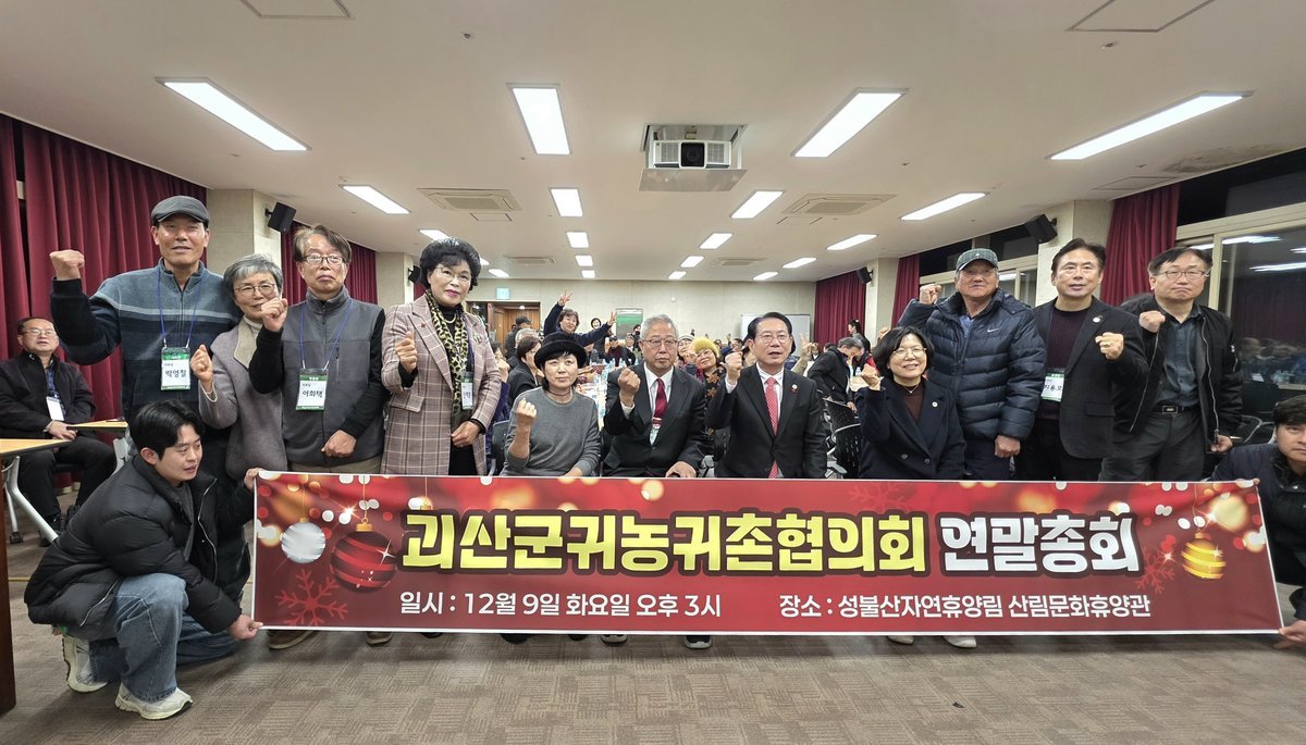[충청뉴스큐] 충북 괴산군귀농귀촌협의회는 지난 9일 성불산자연휴양림 세미나실에서 회원 100여 명이 참석한 가운데 2025년 연말총회 및 화합행사를 개최했다고 밝혔다.