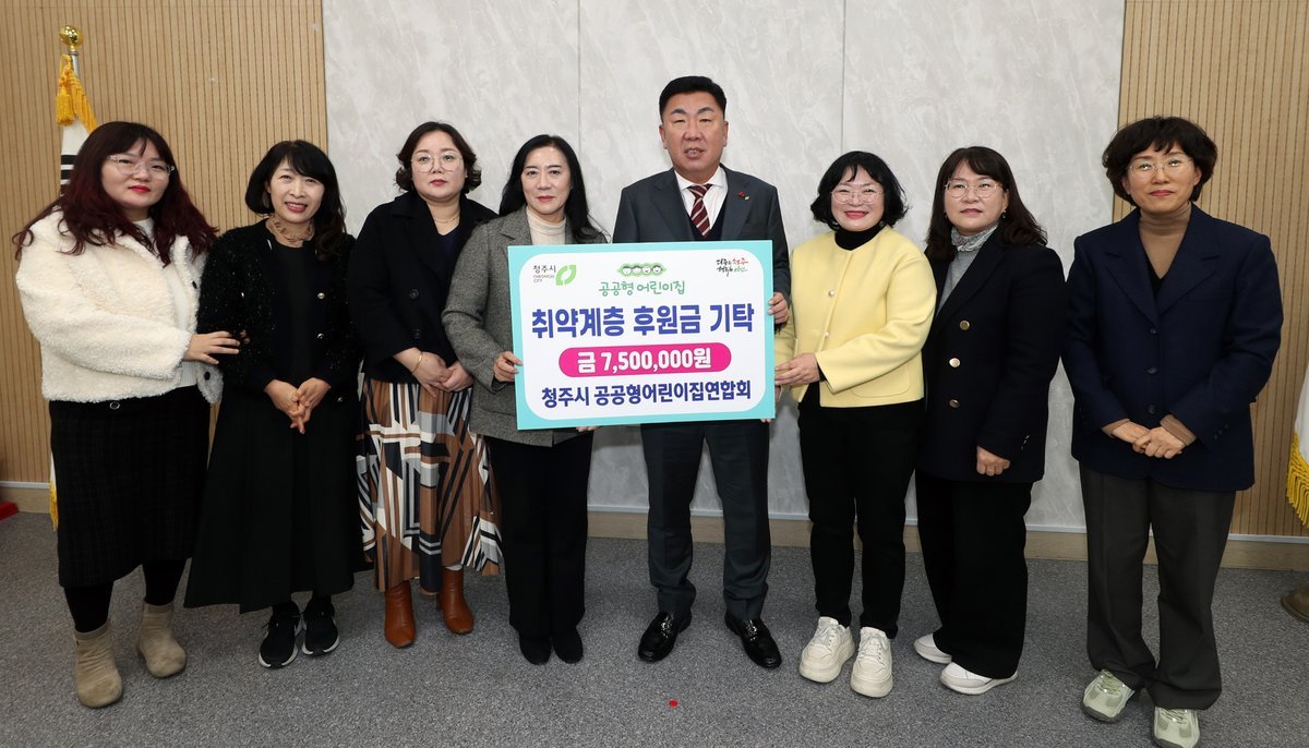 [충청뉴스큐] 청주시 공공형어린이집연합회는 10일 청주시청을 방문해 지역 취약계층의 안전한 환경 조성을 위한 후원금 750만원을 기탁했다.