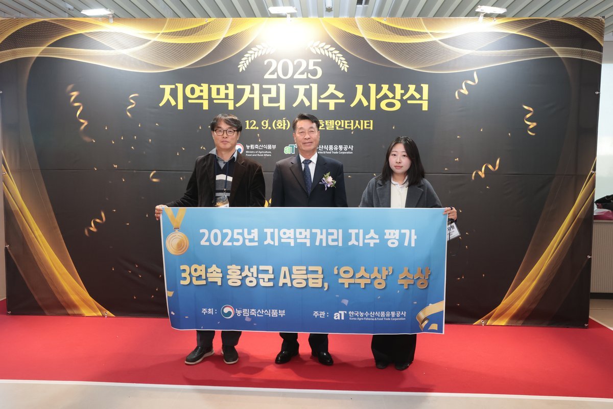 [충청뉴스큐] 충남 홍성군은 지난 9일 농림축산식품부가 주최하고, 한국농수산식품유통공사에서 주관하는 ‘2025년 지역먹거리 지수 평가’에서 3년 연속 A등급을 달성, “우수상”을 수상하며 지역먹거리 정책 우수 지자체로서의 위상을 굳건히 했다고 밝혔다.