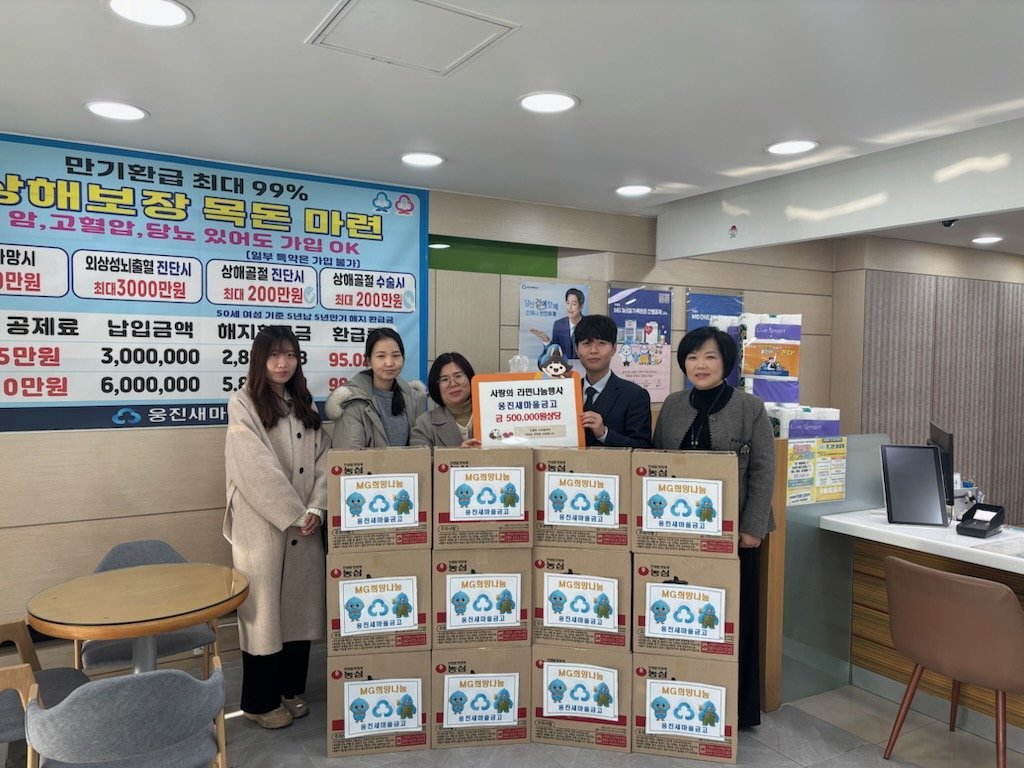 진상호 신관동장은 “평소 지역사회를 위해 꾸준히 나눔을 실천해 온 웅진새마을금고에 진심으로 감사드린다”며 “이웃을 향한 따뜻한 마음이 관내 취약계층에게 큰 힘이 될 것으로 기대한다”고 말했다.