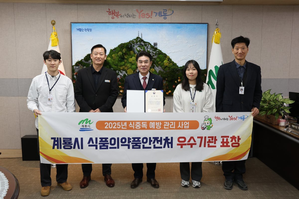 [충청뉴스큐] 계룡시는 ‘2025년 식중독 예방관리 사업 평가’에서 우수 기관으로 선정돼, 지난 12일 식품의약품안전처가 주최한 ‘전국 식중독 예방관리 역량강화 워크숍’에서 식품의약품안전처장 표창을 수상했다고 밝혔다.