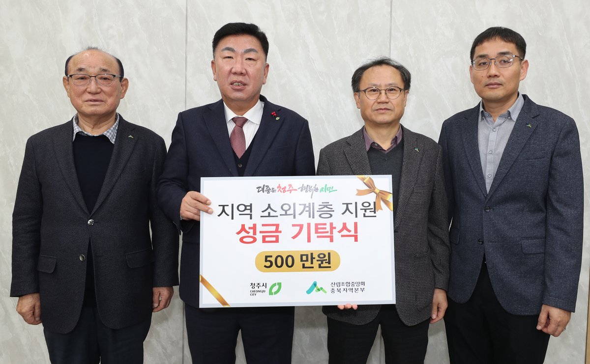 [충청뉴스큐] 청주시는 산림조합중앙회 충북지역본부가 15일 연말 지역 취약계층을 지원하는 데 사용해달라며 성금 500만원을 기탁했다고 밝혔다.