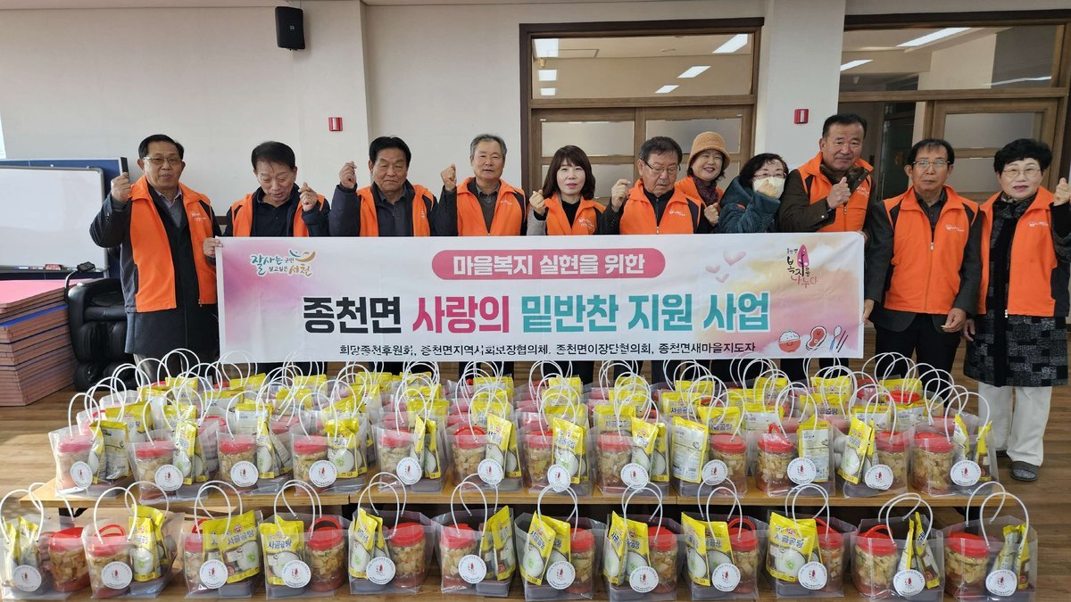 이날 행사에는 희망종천후원회와 종천면지역사회보장협의체, 이장단협의회 위원 등 30여명이 참여해 동지팥죽과 나박김치, 사골곰탕 파우치로 구성된 꾸러미를 어르신 가정에 전달하며 겨울철 안부를 살폈다.
