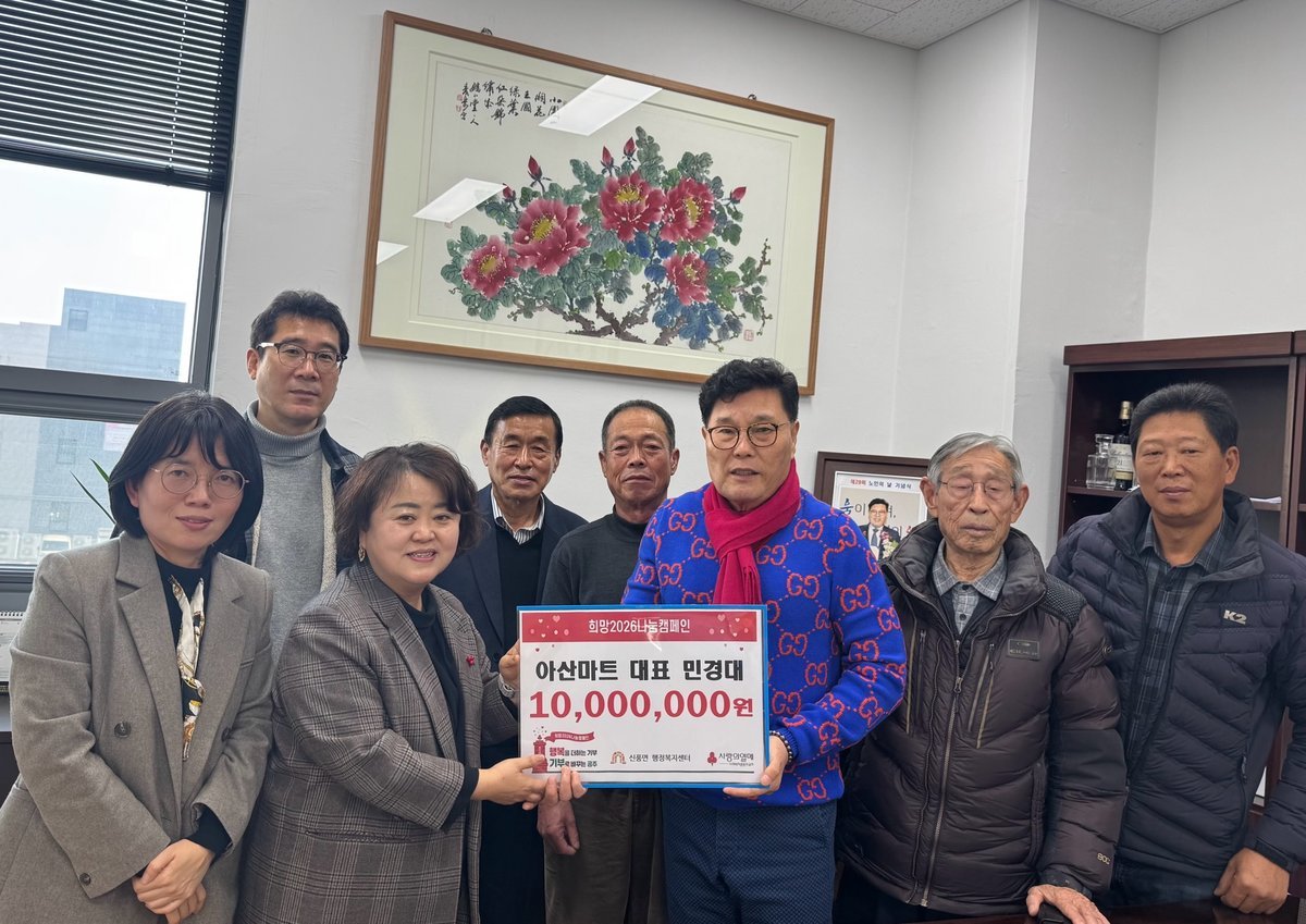 민 회장은 “지역에서 받은 사랑을 다시 지역사회에 돌려드리는 것이 당연하다고 생각한다”며 “이 성금이 어려운 이웃들에게 작은 희망이 되고, 신풍면이 더욱 따뜻한 공동체로 나아가는 데 보탬이 되길 바란다”고 말했다.