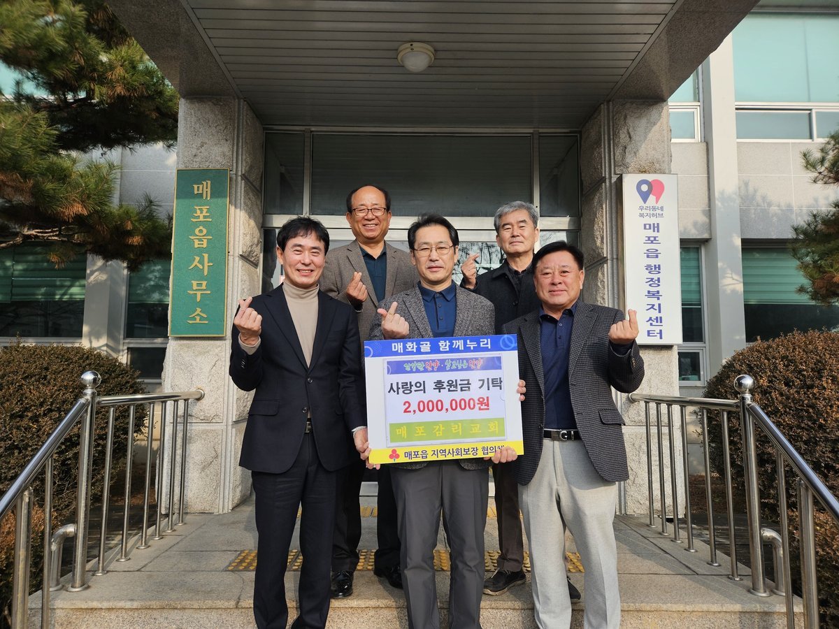 매포감리교회는 지난 17일 지역 내 어려운 이웃을 돕기 위해 매포읍 지역사회보장협의체에 성금 200만 원을 기탁했다.