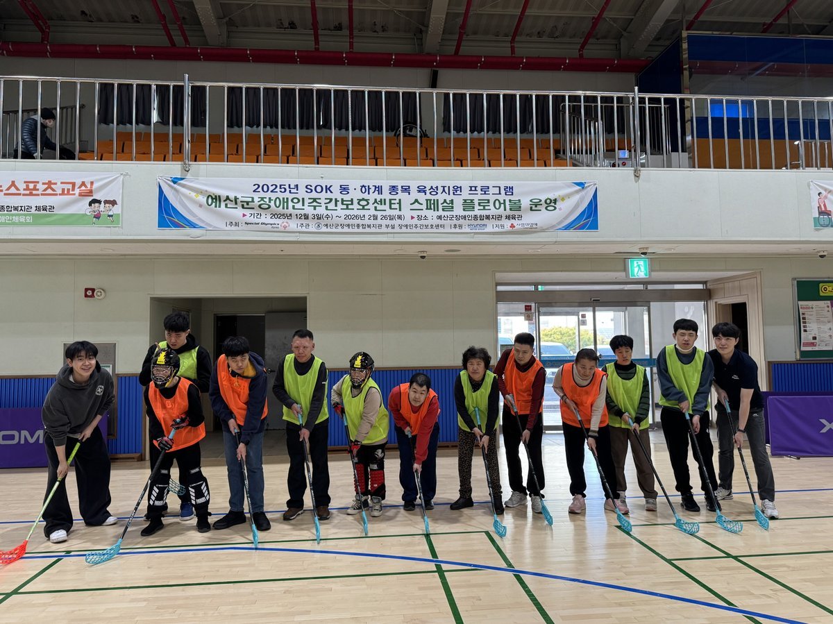 [충청뉴스큐] 예산군장애인종합복지관 부설 장애인주간이용센터가 ‘2025 SOK 동·하계 종목 육성지원 프로그램’에 선정돼 동계 스포츠 종목인 ‘플로어볼’프로그램을 운영하고 있다고 밝혔다.