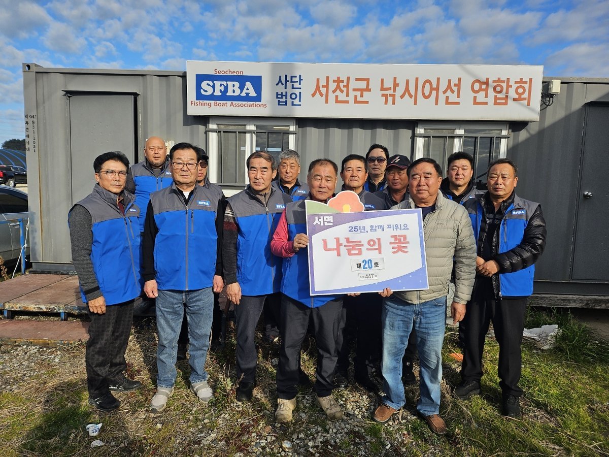 [충청뉴스큐] 서천군 낚시어선 연합회는 지난 19일 서면사랑후원회에 후원금 100만 원을 기부하며 서면 ‘나눔의 꽃 20호’로 선정됐다.