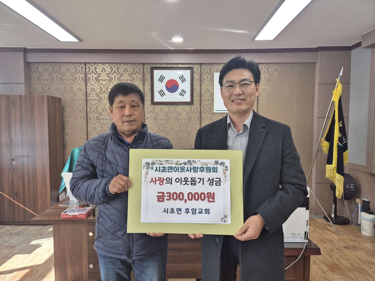 [충청뉴스큐] 시초면이웃사랑후원회는 시초면 소재 후암교회와 참사랑교회가 교인들의 정성을 모아 잇따라 성금을 기탁하며 지역사회에 따뜻한 나눔을 전했다고 밝혔다.