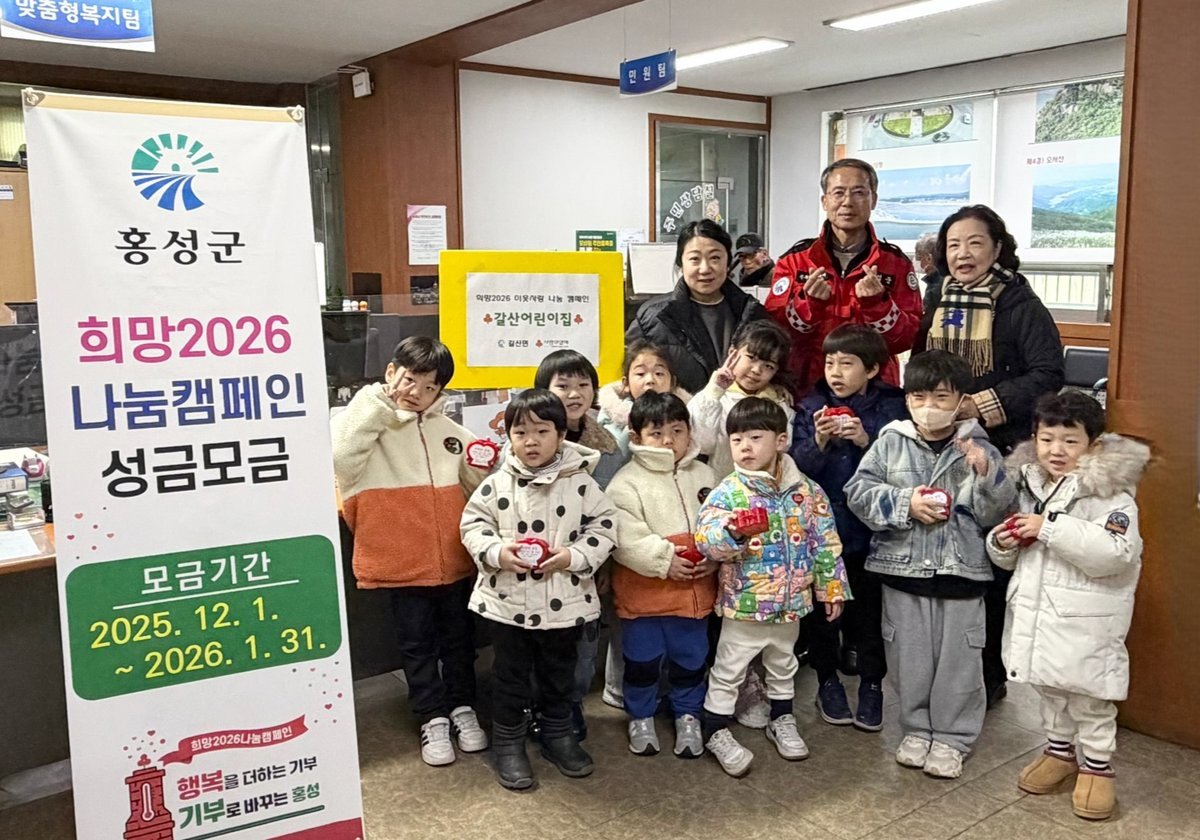 [충청뉴스큐] 홍성군은 갈산어린이집 원아와 교직원들이 지난 23일 갈산면 행정복지센터를 방문해 어려운 이웃을 돕기 위한 ‘사랑의 저금통’을 전달했다고 밝혔다.