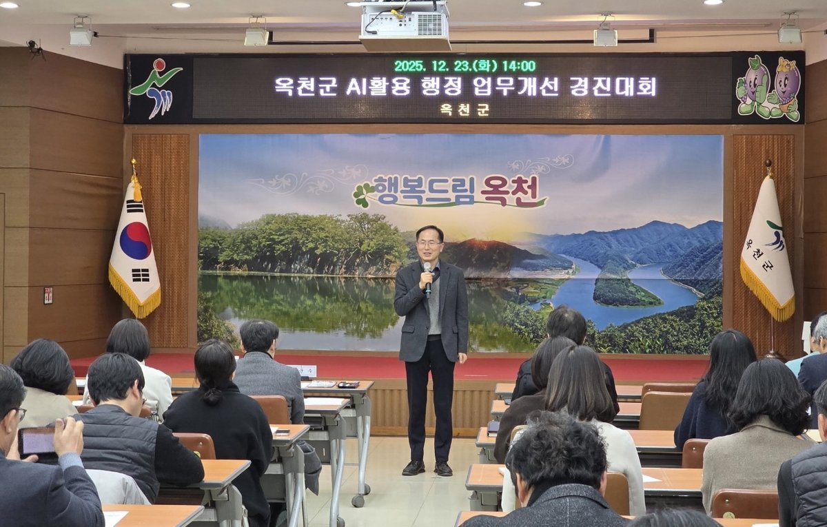이번 대회는 옥천군 전 직원을 대상으로 AI 기술을 접목한 우수 행정사례를 발굴하고 공유함으로써 행정의 효율성 및 공직자 역량을 강화하고, 조직 내 창의적이고 스마트한 행정문화를 확산하기 위해 추진됐다 군은 지난 11월 13일부터 12월 19일까지 총 10개 팀이 AI 행정 우수사례를 접수, 공정한 심사 후 최종 발표대회를 12월 23일 진행했다.