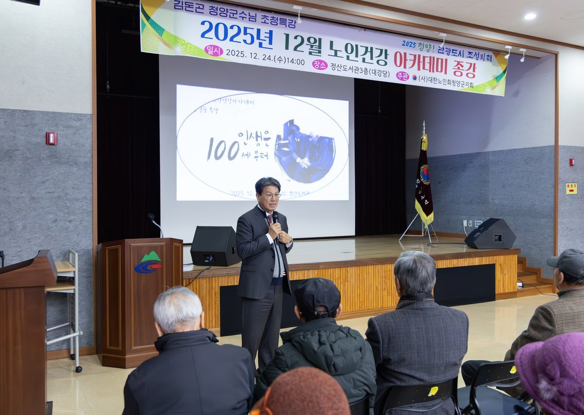 종강식은 1부 종강식과 2부 군수 특강 순서로 진행되었으며, 특히 김돈곤 청양군수가 ‘인생은 100세부터’라는 주제로 특강을 진행했다.