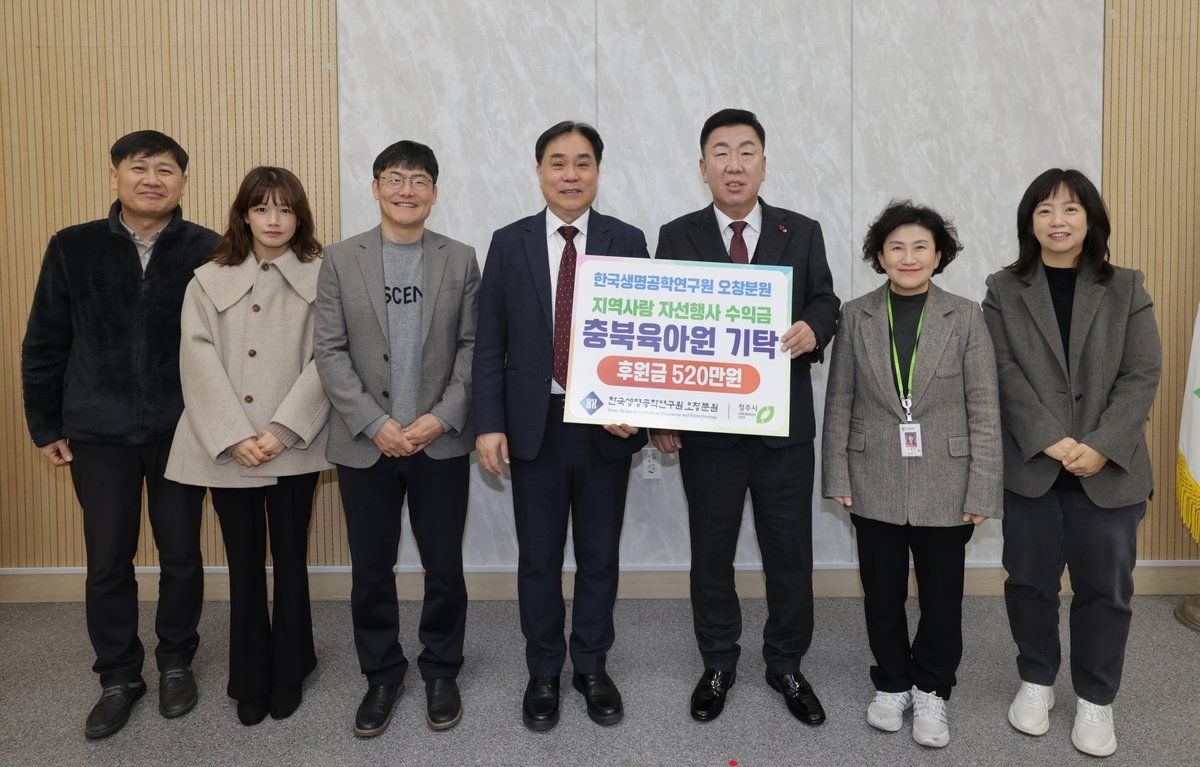 [충청뉴스큐] 한국생명공학연구원 오창분원은 30일 청주지역 아동양육시설 보호아동을 위해 사용해 달라며 청주시에 자선행사 수익금 520만원을 기탁했다.