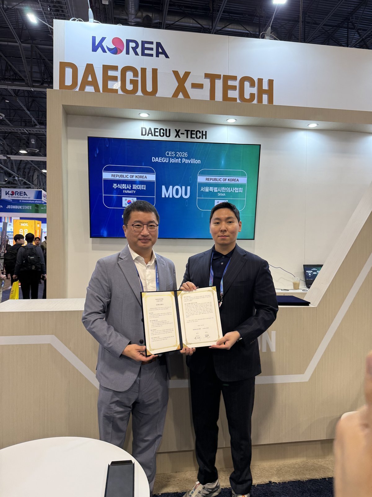 전시회 현장 기업 간 협력 성과 가시화 전시 현장에서는 대구공동관 참가기업 ㈜유엔디가 글로벌 산업기술 기업 한국지멘스와 로봇·자동화 분야 협력을 위한 업무협약을 체결했다.