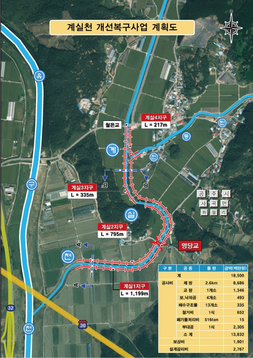 [충청뉴스큐] 공주시는 지난해 집중호우로 큰 피해가 발생한 사곡면 화월리 계실천 일원에 총사업비 185억 원을 투입해 ‘계실천 개선복구사업’을 본격 추진한다고 12일 밝혔다.