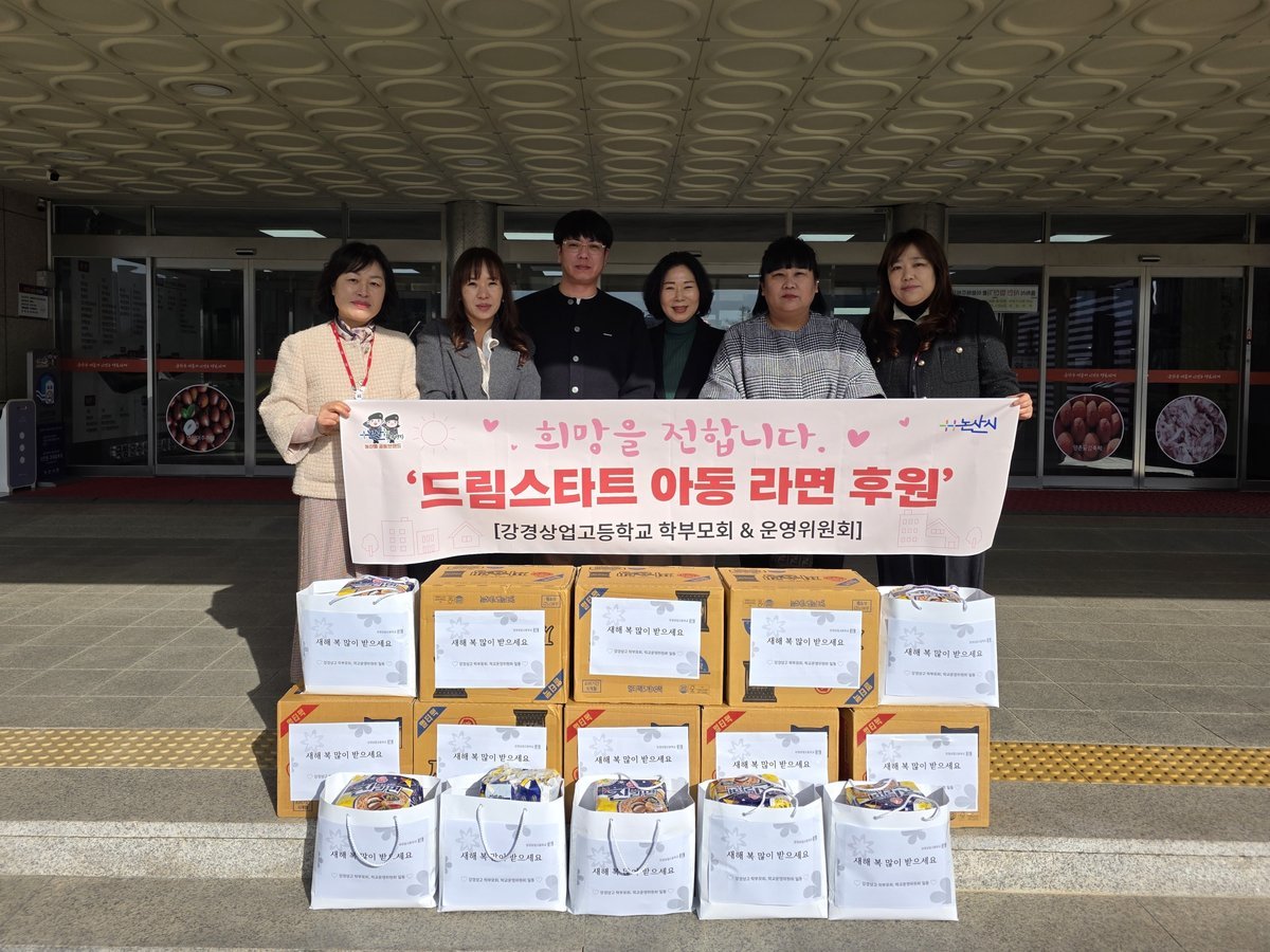 [충청뉴스큐] 강경상업고등학교 학부모회와 운영위원회에서 지난 9일 논산시 드림스타트를 방문해 라면 10박스를 기탁했다.