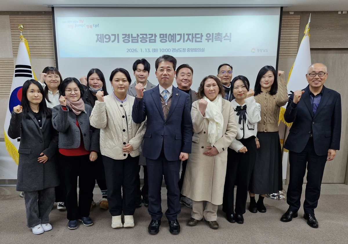 [충청뉴스큐] 경상남도는 13일 도청 본관 2층 중앙회의실에서 ‘제9기 경남공감 명예기자단’ 위촉식을 열고, 본격적인 활동의 시작을 알렸다.