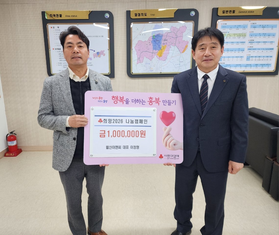 [충청뉴스큐] 홍성군은 ㈜월산이앤씨가 지난 13일, 지역사회 이웃돕기 실천의 일환으로 희망2026 나눔캠페인에 성금 100만 원을 기탁했다고 밝혔다.
