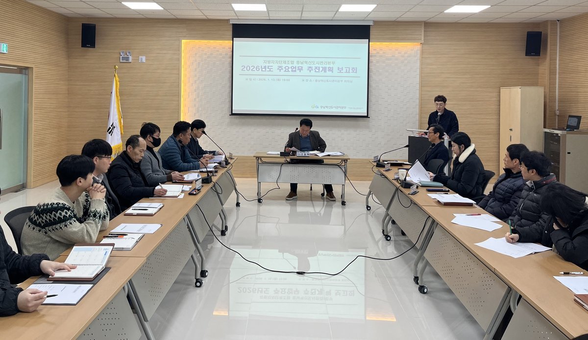 [충청뉴스큐] 지방자치단체조합 충남혁신도시관리본부는 지난 13일 2026년도 주요업무 추진계획 보고회를 열고 올해 주요 역점 사업과 핵심과제를 공유했다.