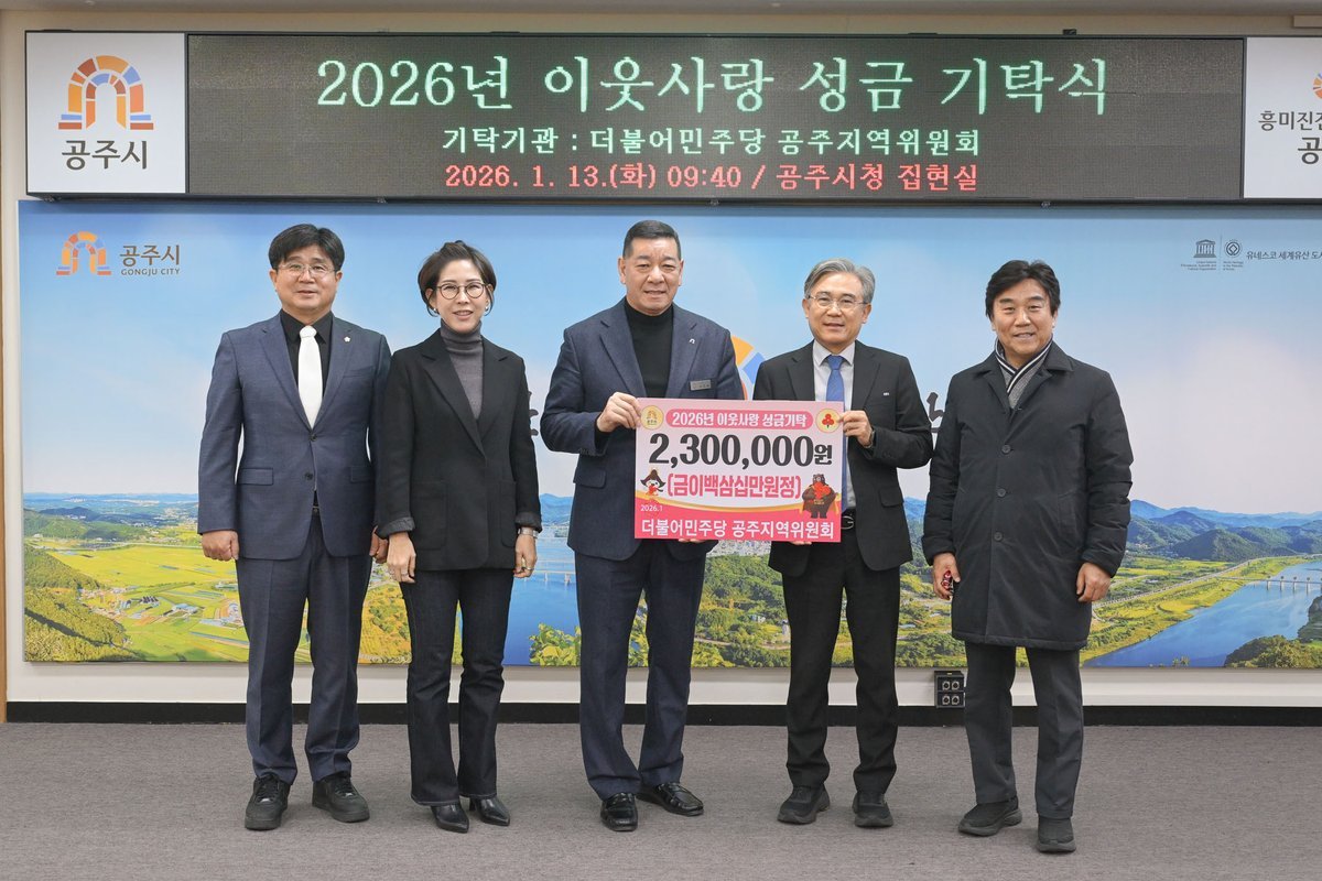 [충청뉴스큐] 공주시는 지난 13일 시청 집현실에서 더불어민주당 공주지역위원회가 지역의 어려운 이웃을 돕기 위해 성금 230만원을 기탁했다고 밝혔다.